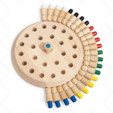 • 🎯 Matching Game – Find and match coloured pegs, wooden board, pegs & dice